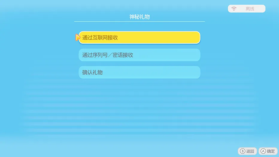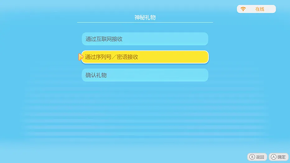 - ※“序列号/密语”的礼物即使删除保存数据,也无法使用同一个Nintendo Account再次领取,敬请注意。但是,对于部分在发布序列号时注明可不限次数领取的礼物,可以通过重新创建保存数据来再次领取。
